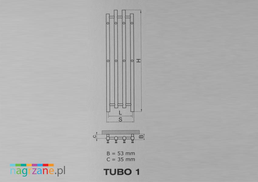 Dekoracyjny grzejnik Tubo chrom firmy Radeco wyróżnia się okrągłymi, pionowymi profilami grzewczymi umieszczonymi na dwóch wysokościach do których wbudowane są wieszaki służące między innymi do suszenia ręczników. Grzejnik posiada podłączenie dolne standardowe lub krzyżowe o rozstawie zależnym od jego szerokości. Tubo chrom pokryty jest powłoką galwaniczną.
