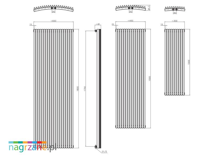 profile grzewcze: trójkątne o przekroju 30 mm x 90 mm x 20 mm,