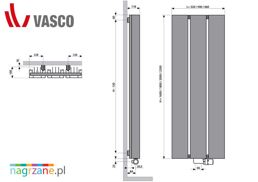 Grzejnik dostarczany jest w zestawie z kompletem zawiesi ściennych (zawiesia są schowane pod grzejnikiem w sposób niezaburzający prostej, symetrycznej bryły grzejnika) oraz automatycznym odpowietrznikiem.