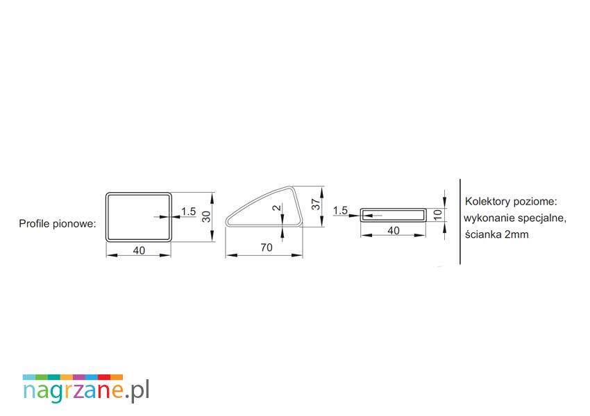Grzejnik produkowany jest w trzech szerokościach: 420 mm, 516 mm i 615 mm, oraz dwóch wysokościach: 1800 mm i 2000 mm; głębokość każdego z wariantów wynosi 133 mm, rozstaw przyłączy – 50 mm, a moc, przy parametrach 75/65/20, od 1676 W, do aż 2183 W.