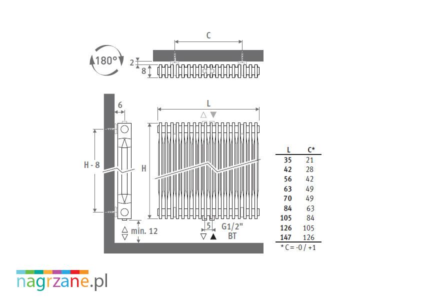 - grzejnik malowany proszkowo na dowolny kolor z palety Jaga