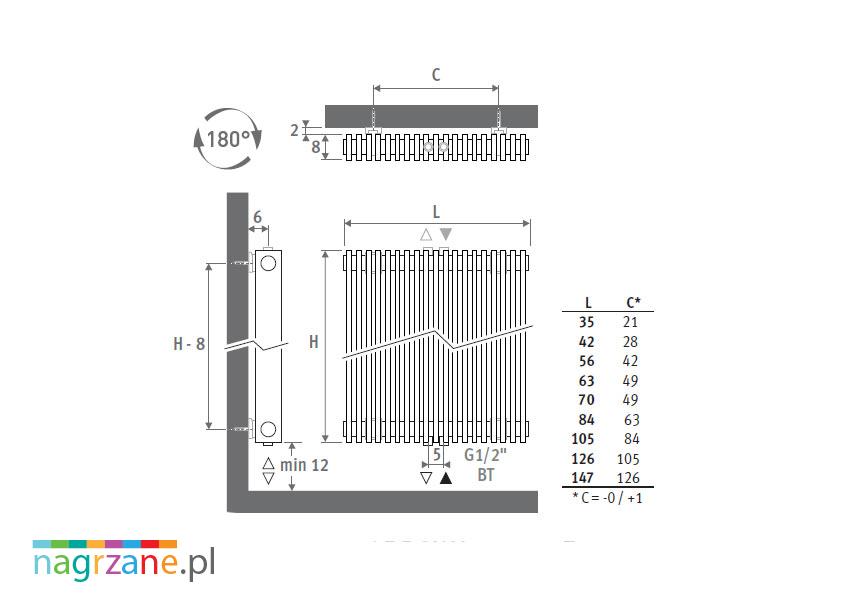 - grzejnik malowany proszkowo na dowolny kolor z palety Jaga