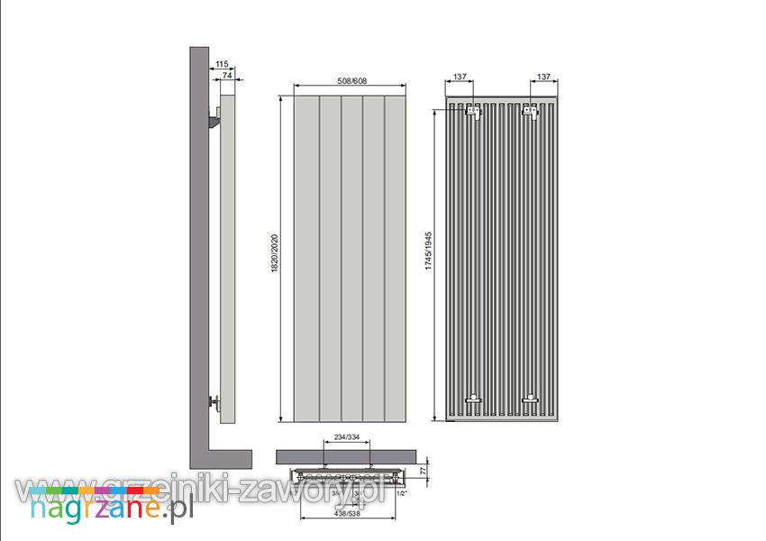 Vertiline VD dostępny jest w dwóch wysokościach: 1820 i 2020 mm oraz w dwóch szerokościach: 508 i 608 mm.