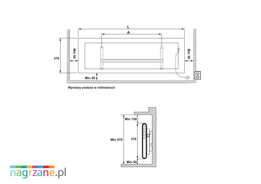 - Minimalna wymagana przestrzeń pod grzejnikiem – 50 mm.