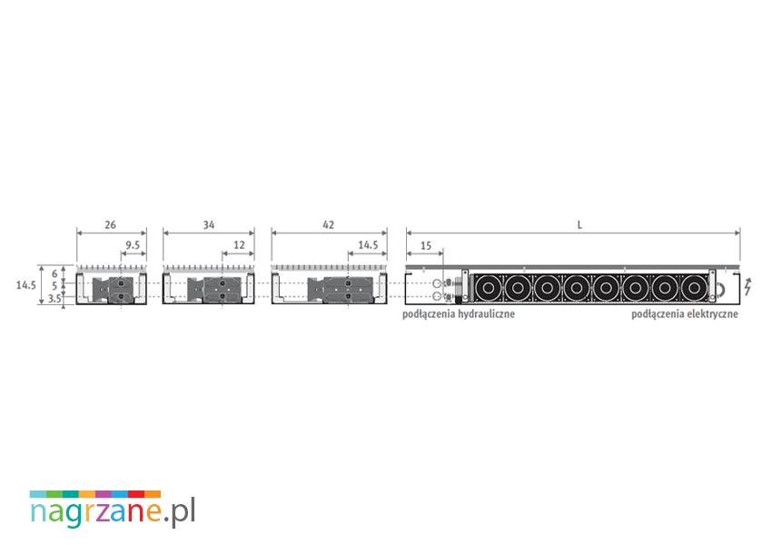 - wentylatory, w ilości zależnej od długości grzejnika;