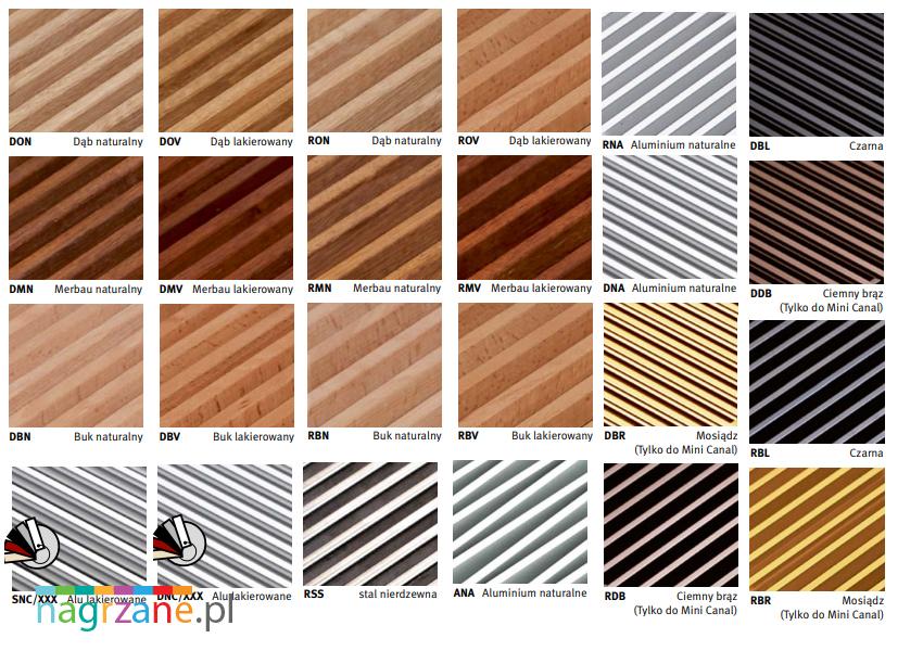 Wnętrze grzejnika Mini Canal zawsze malowane jest na ciemno szary kolor RAL 7024. Na indywidualne zamówienie, jest możliwość zamówienia wersji specjalnej kaloryfera np. w postaci łuku czy specjalnych wycięć na elementy konstrukcyjne znajdujące się wewnątrz budynku. Ważnym elementem każdego modelu jest kratka, która zakrywa część grzejną i jednocześnie zabezpiecza ją. Firma Jaga udostępnia kratki aluminiowe, drewniane czy nawet ze stali nierdzewnej.