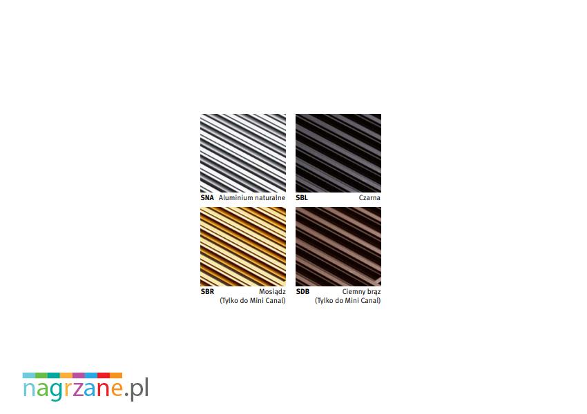 Wnętrze grzejnika Mini Canal zawsze malowane jest na ciemno szary kolor RAL 7024. Na indywidualne zamówienie, jest możliwość zamówienia wersji specjalnej kaloryfera np. w postaci łuku czy specjalnych wycięć na elementy konstrukcyjne znajdujące się wewnątrz budynku. Ważnym elementem każdego modelu jest kratka, która zakrywa część grzejną i jednocześnie zabezpiecza ją. Firma Jaga udostępnia kratki aluminiowe, drewniane czy nawet ze stali nierdzewnej.