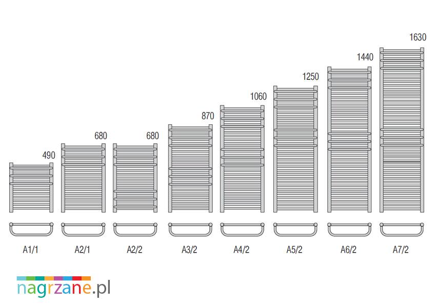 W ofercie grzejników miedzianych Radeco model Aria (A) stanowi doskonałe połączenie, wydajności, funkcjonalności i wygody użytkowania. Podstawę grzejnika stanowi drabinka wykonana z okrągłych kolektorów i poziomych profili znajdujących się w jednej płaszczyźnie. Dodatkowe 3 lub 6 profili (w zależności od wymiaru grzejnika) wygięte są w kształt litery C i zamontowane są w taki sposób aby maksymalnie ułatwić wykorzystanie ich jako wieszaków – suszarki na ręczniki.