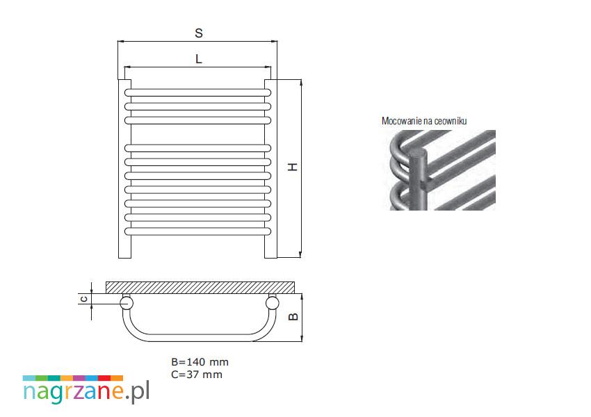 - montaż: grzejnik do montażu naściennego, montowany na ceownikach na stałe przymocowanych do grzejnika;