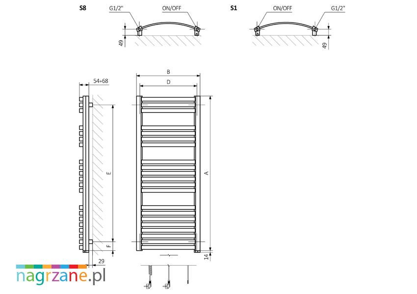 - Podłączenie: przez rurkę zanurzeniową z prawej lub lewej (S1 lub S8)