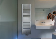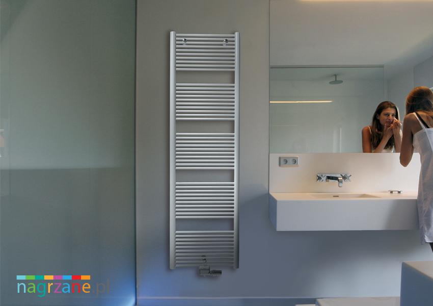 Dodatkowo, grzejnik występuje w dwóch wariantach - z prostymi profilami grzewczymi oraz lekko wygiętymi. Warto wspomnieć, że Malva występuje we wszystkich kolorach oferowanych producenta. W komplecie z grzejnikiem znajdują się zawiesia ścienne. Ich barwa zależy od wybranego koloru grzejnika - jeśli jest biały, zawiesia będą białe, w przypadku innych zabarwień kaloryfera będą chromowane. Kaloryfer jest podłączany za pomocą wejścia dolnego środkowego z rozstawem osi 50 mm oraz dolnego standardowego.
