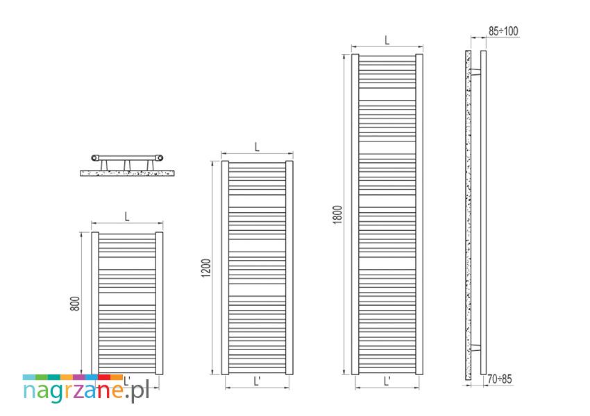 Pareo dostępny jest w trzech wysokościach: 800 mm (czternaście rur), 1200 mm (dwadzieścia jeden rur), 1800 mm (trzydzieści dwie rury) oraz aż sześciu szerokościach: 400 mm, 450 mm, 500 mm, 550 mm, 600 mm, 750 mm.