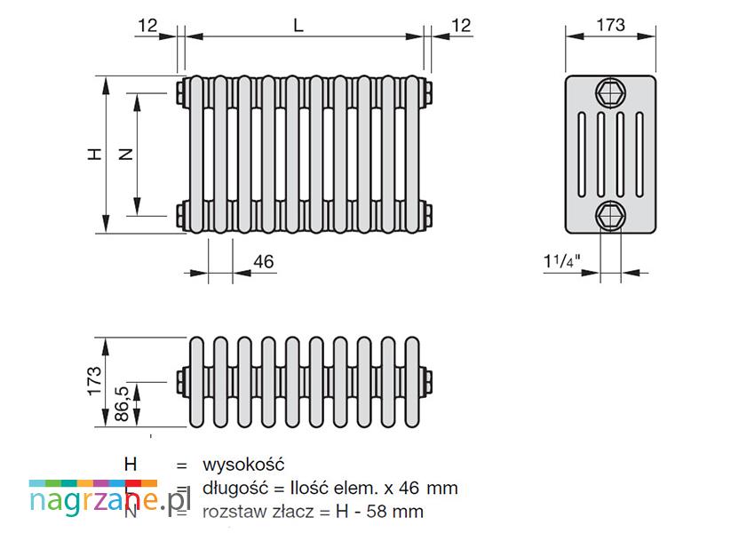 Modułowa budowa grzejnika umożliwia dowolny wybór ilości elementów z których będzie się składał Charleston w zakresie od 4 do 40.
