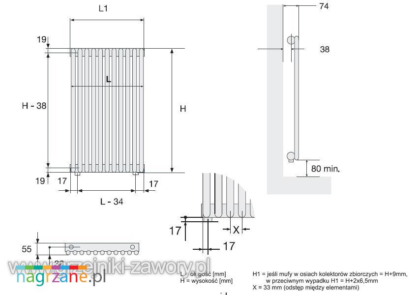 Modułowa budowa grzejnika umożliwia dowolny wybór wysokości oraz szerokości grzejnika.