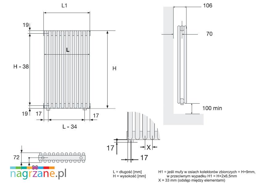 Modułowa budowa grzejnika umożliwia dowolny wybór wysokości oraz szerokości grzejnika.