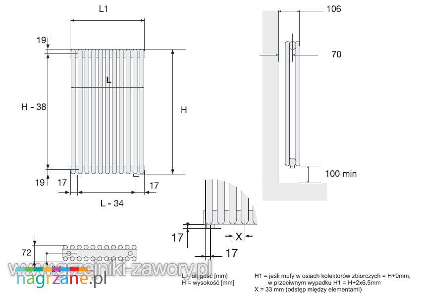 Modułowa budowa grzejnika umożliwia dowolny wybór wysokości oraz szerokości grzejnika.