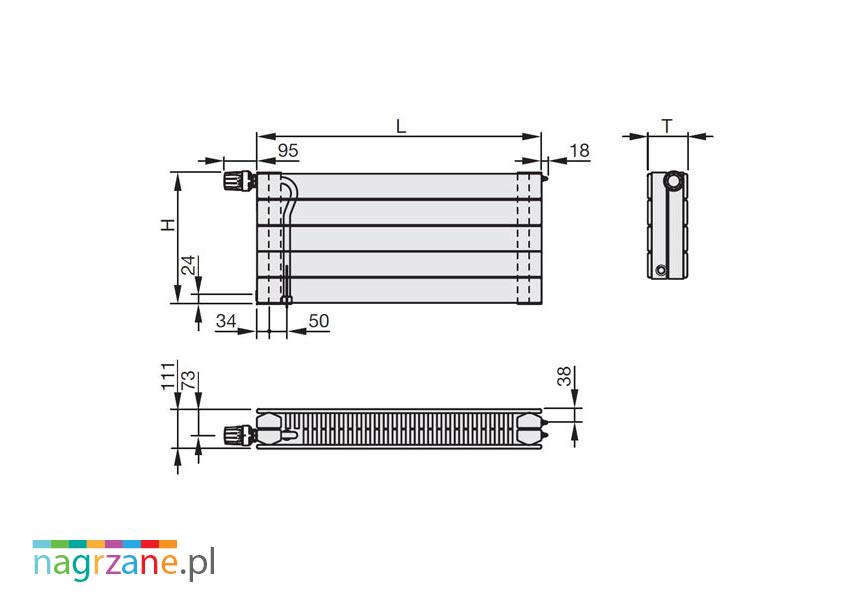 - Profile grzewcze: prostokątne 70 x 11 mm