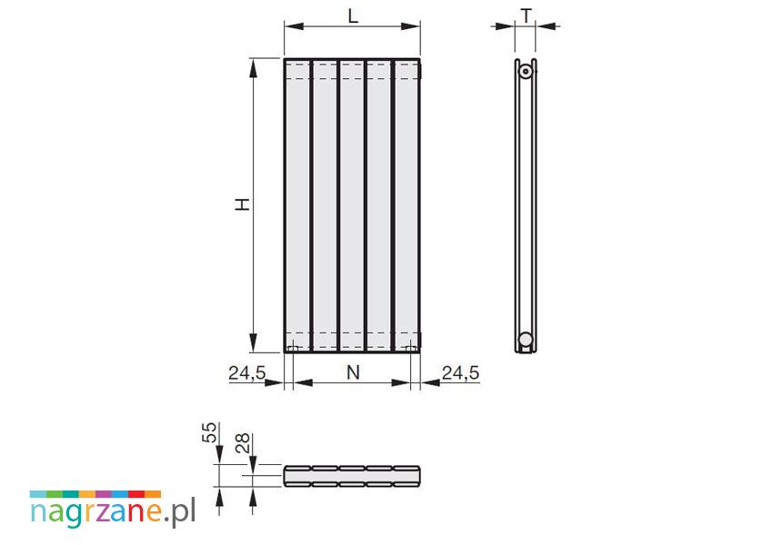 - Profile grzewcze: prostokątne 70 x 11 mm