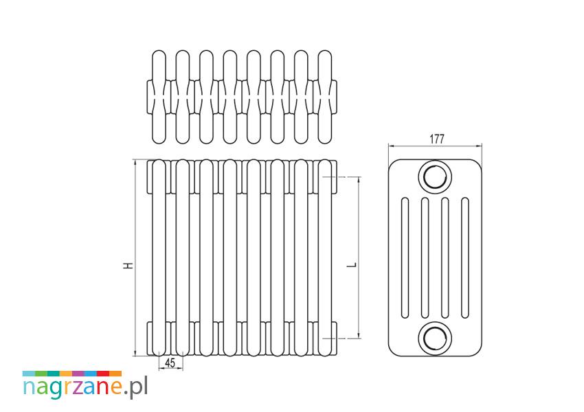 Standardowe elementy wyposażenia grzejnika Tesi5: