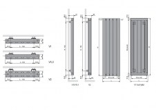 Model występuje w wielu rozmiarach – jedenastu szerokościach i siedmiu wysokościach (składa się z od trzech, do czternastu rurek) oraz licznych wariantach podłączeń hydraulicznych: