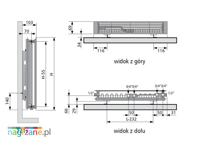 Do instalacji wodnej kaloryfer można podłączyć za pomocą dolnego środkowego 50 mm, dolnego prawego 50 mm, krzyżowego oraz bocznego. Ciśnienie robocze wynosi 6 barów. Vasco udziela na grzejniki Flatline dziesięcioletniej gwarancji.