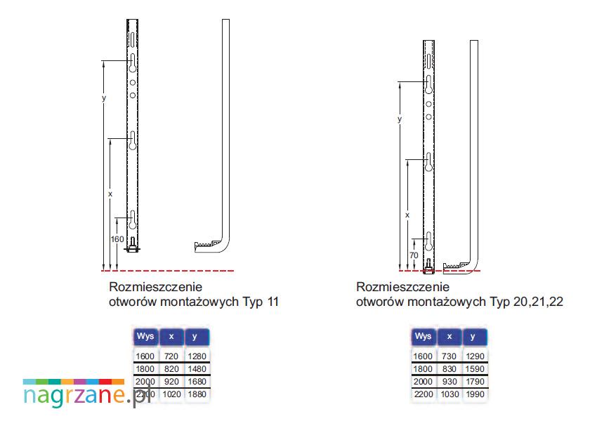 Podłączenia dostępne dla tego modelu: dolne środkowe o rozstawie osi 50 mm, dolne standardowe (o rozstawie zależnym od szerokości grzejnika); możliwe jest również podłączenie grzejnika od góry.