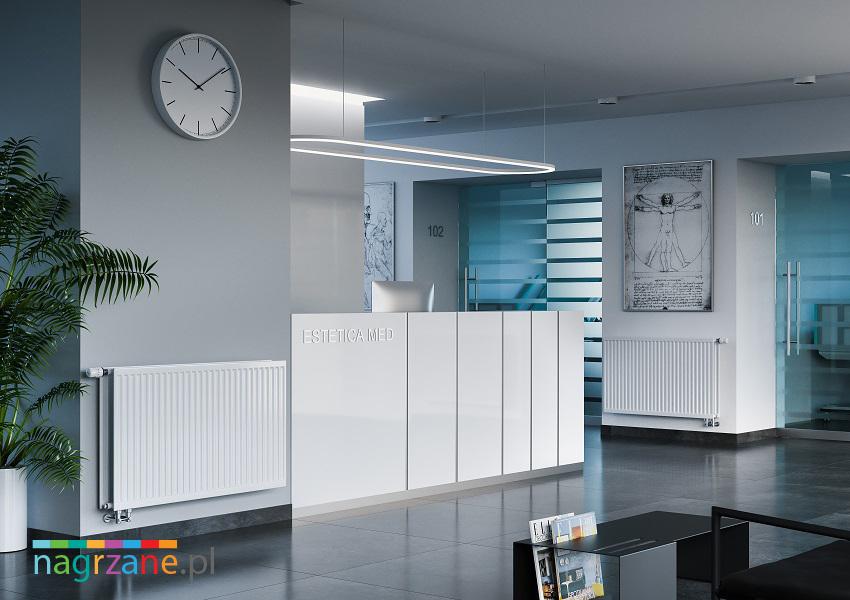 Grzejnik higieniczny Purmo Ventil Hygiene to model przeznaczony do pomieszczeń o podwyższonych standardach jak np. w szpitalach czy przychodniach. Specjalna konstrukcja kaloryfera pozwala na łatwe czyszczenie go z kurzu oraz innych zabrudzeń, przez co idealnie sprawdza się w takich budynkach. Warto dodać, że model doceniany jest przez osoby cierpiące na różnego rodzaju alergie. Purmo Ventil Hygiene wyróżnia się klasycznym dolnym podłączeniem, którego rozstaw wynosi 50 mm.