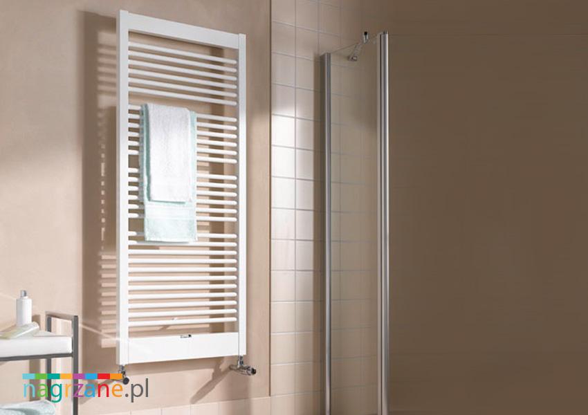 Grzejnik Credo-Uno firmy Kermi to drabinka łazienkowa składająca się z pionowych kolektorów zbiorczych o przekroju kwadratowym między którymi znajdują się poziome, okrągłe profile grzewcze, całość dopełniają dwie ozdobne osłony w górnej i dolnej części grzejnika.
