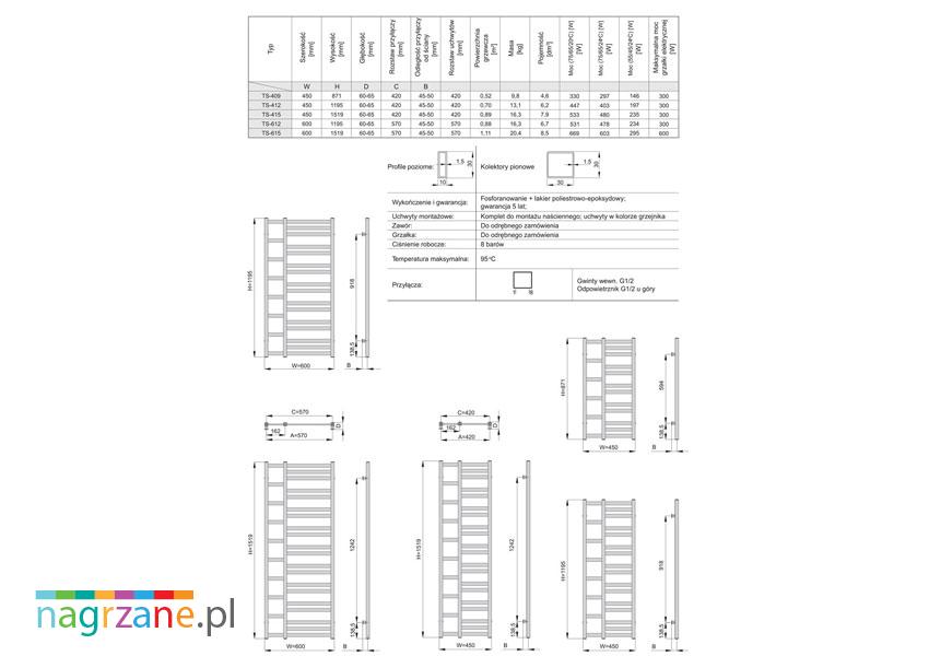 Tales został wykonany z profili grzewczych o wymiarach 10 x 30 mm, z kolei jego kolektory mają wielkość 30 x 30 mm. Podłączenie do instalacji wodnej może odbyć się przez wejście dolne standardowe, które pozwala na podłączenie grzałki elektrycznej (przy zastosowaniu odpowiedniego trójnika). Na grzejnik, przedsiębiorstwo Enix pięcioletniej gwarancji. Maksymalna temperatura pracy sięga 95°C, natomiast dopuszczalne ciśnienie robocze wynosi 8 barów.