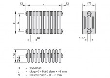 Modułowa budowa grzejnika umożliwia dowolny wybór ilości elementów z których będzie się składał Charleston w zakresie od 4 do 40.